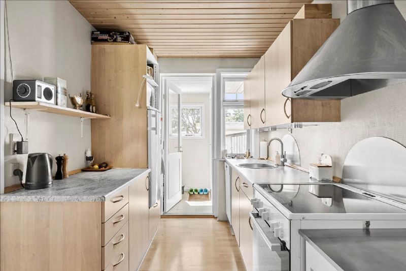 Kælderen indeholder disponibelt rum og disponibelt rum med installation til vaskemaskine samt udgang til have