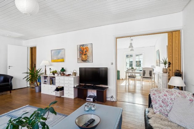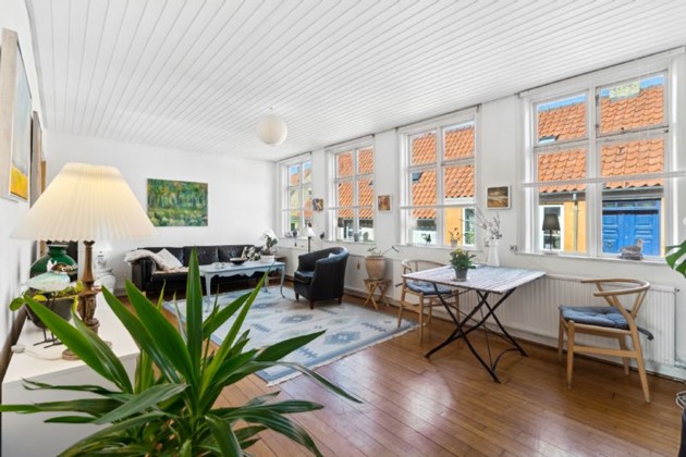 Huset oser af charme og karakter, fra de højloftede rum til de store Dannebrogsvinduer, der bader stueetagen i et enestående lys.