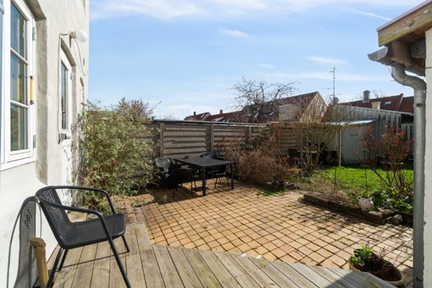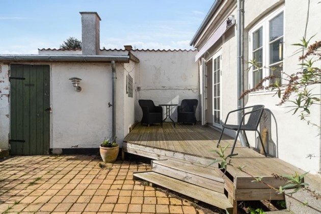 Gårdhaven, der er tilgængelig både fra huset og via et overdækket gænge fra gaden, tilføjer en ekstra dimension af rum og frihed – en luksus i bymiljøet.