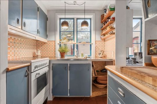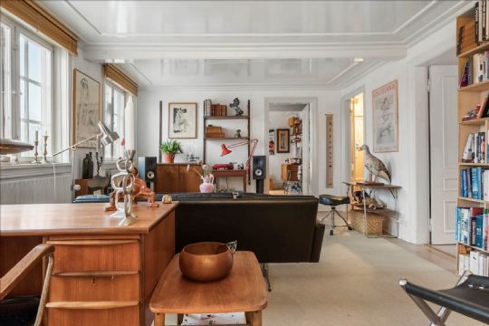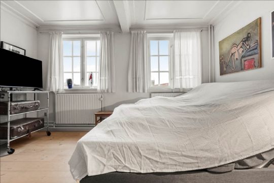 Stueplanet rummer desuden en lys stue med originale lofter samt to værelser – et mindre og et større, der egner sig godt som soveværelse.