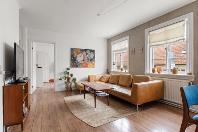 HASLE – Ugens bolig hos DanBolig er et charmerende byhus på Storegade i Hasle med solgul facade, hvide dannebrogsvinduer og sort sokkel.