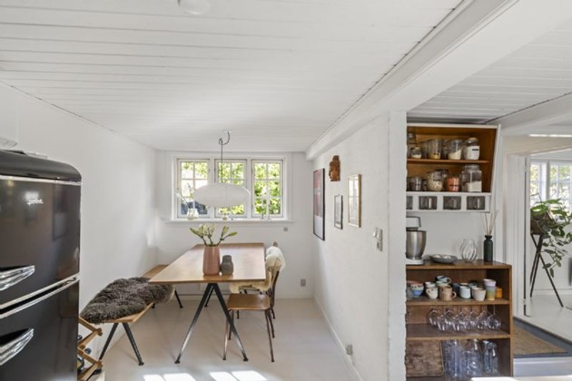 De seneste tre års renoveringer har gjort boligen velholdt og indbydende, samtidig med at det autentiske udtryk er bevaret. Indenfor byder huset på en lys entré, der fører til et hyggeligt spisekøkken med synlige bjælker og traditionelle detaljer. Køkkenet er funktionelt, fyldt med skabsplads og har et dejligt lysindfald fra sprossede vinduer, som giver udsyn til den frodige gårdhave. Desuden findes der et moderne badeværelse med bruseniche og et separat toilet med el-gulvvarme.