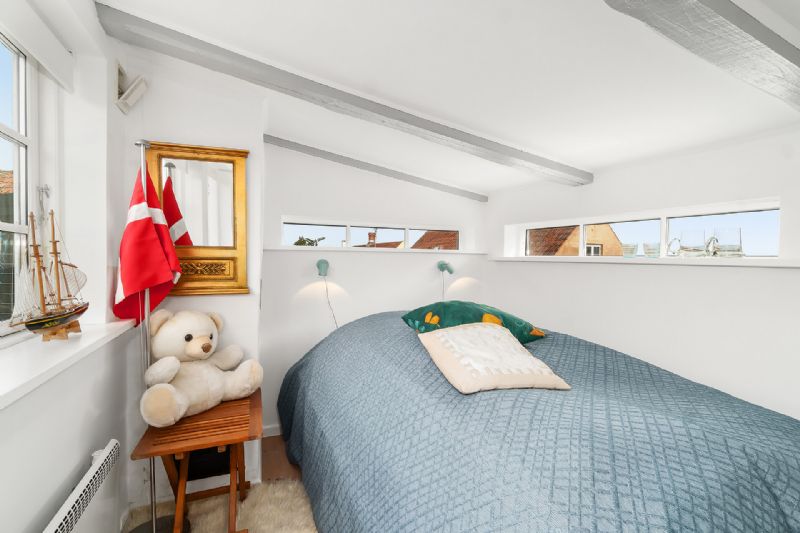 Boligen i halvandet plan er flot og udnytter pladsen optimalt, mens der udenfor er en hyggelig gårdhave med et isoleret anneks.