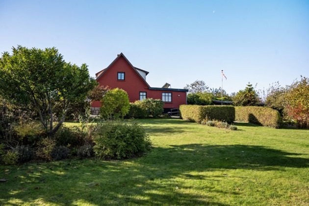 Ejendommen, som ligger højt på en stor grund, byder på idylliske udearealer med frugttræer, buske og hyggelige lækroge, hvor I kan nyde naturens skønhed i private omgivelser.