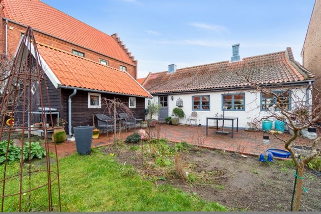 Haven er et kapitel for sig selv. Til forskel fra mange byhuse, byder denne ejendom på en overraskende rummelig have, der åbner op for et utal af muligheder. Her finder man en velholdt græsplæne, en terrasse med flotte fliser, og et charmerende udhus, der komplementerer boligens overordnede æstetik. Om sommeren forvandles haven til et farverigt blomsterhav, der fuldender oplevelsen af dette idylliske byhus.