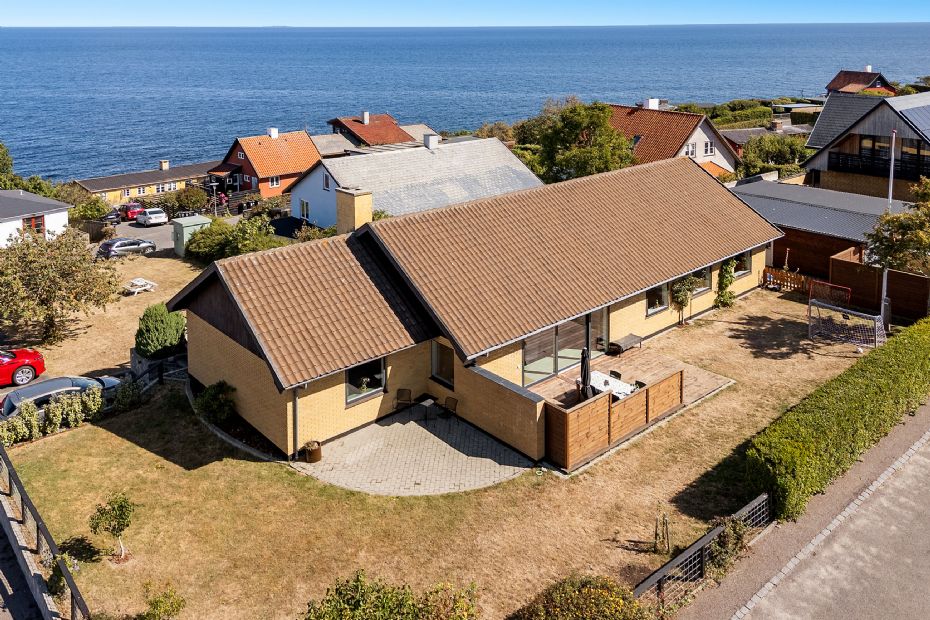 Fra både stuer, terrasse og have er der en enestående udsigt til Østersøen og Gudhjem Havn, som kan nydes året rundt.