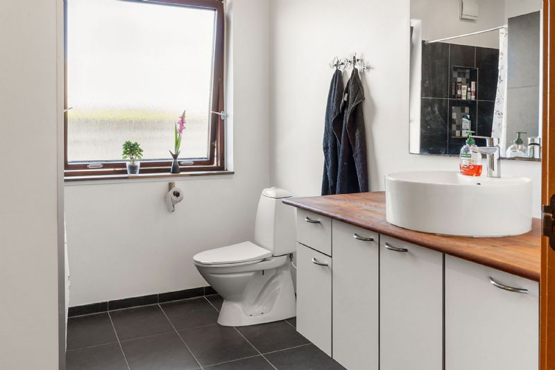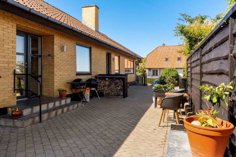 Boligen rummer desuden bryggers, entré med gulvvarme samt garage og værksted. Med flere terrasser orienteret efter solen er der både plads til familieliv, gæster og hverdagsprojekter i de naturskønne omgivelser.