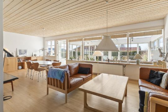 Herfra er der direkte udgang til haven og flere terrassemiljøer.