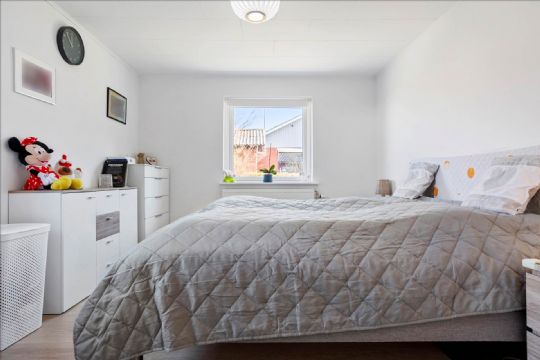 Velindrettet boligBoligen byder på et indbydende bryggers med vaskefaciliteter og en rummelig fordelingsgang med adgang til husets øvrige rum. Her er to store og lyse værelser med indbyggede skabe samt et ekstra værelse, der kan anvendes som kontor, børneværelse eller hobbyrum.