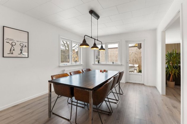 Huset ligger centralt med kort afstand til skole, daginstitutioner, indkøbsmuligheder og byens natur. Den kombinerede stue og udestue giver udsigt til haven og er velegnet til både familieliv og større sammenkomster.