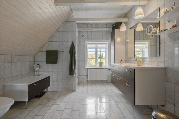 Flotte udearealerTil villaen hører en nyere garage med plads til værksted, en hyggelig, lukket gårdsplads samt en velplejet have med legeområde og to terrasser med kig til havet.