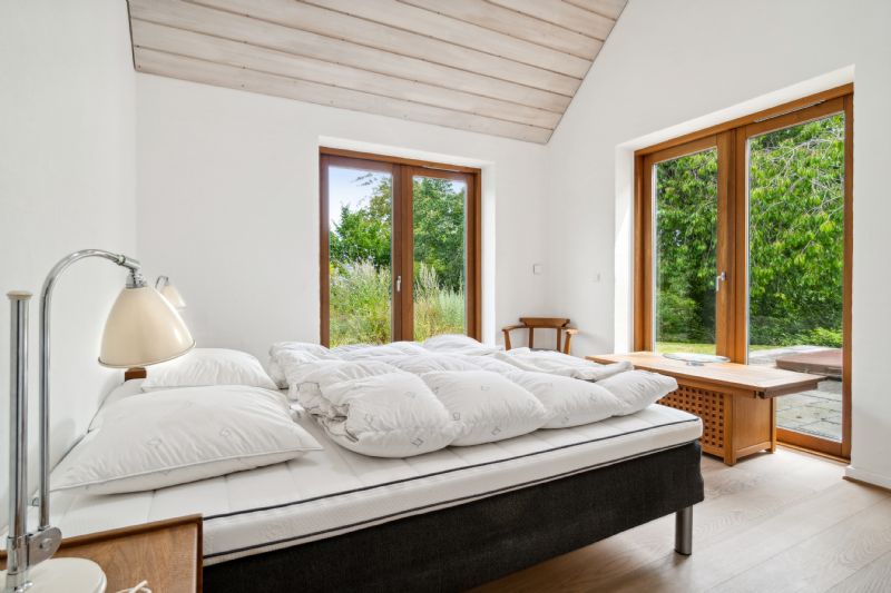 Den gennemgående stil i indretningen er tydelig, da indbygningsskabene i de tre værelser matcher køkkenet. Et af værelserne har eget køkken og nem adgang til et badeværelse, hvilket gør det ideelt til gæster. Det største soveværelse har et walk-in-closet og direkte adgang til et suitebadeværelse med badekar og dampbad. Det tredje værelse ligger i modsatte ende ved bryggerset og endnu et badeværelse.