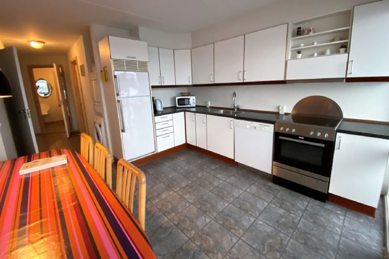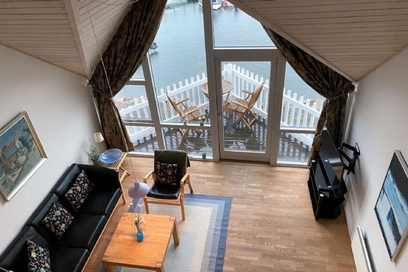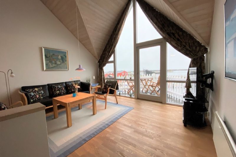 Lejligheden indeholder vindfang, entre med trappe i 1. sal, soveværelse med skabe, badeværelse med gulvvarme, bruseniche, karbad og skabe, stort køkken/alrum med god skabs- og arbejdsplads og spiseafdeling. Fra køkkenet er udgang til dejlig terrasse, direkte til havnen og havet.