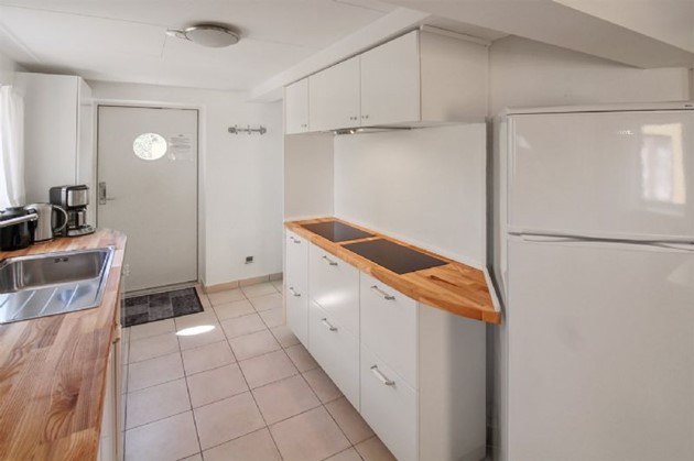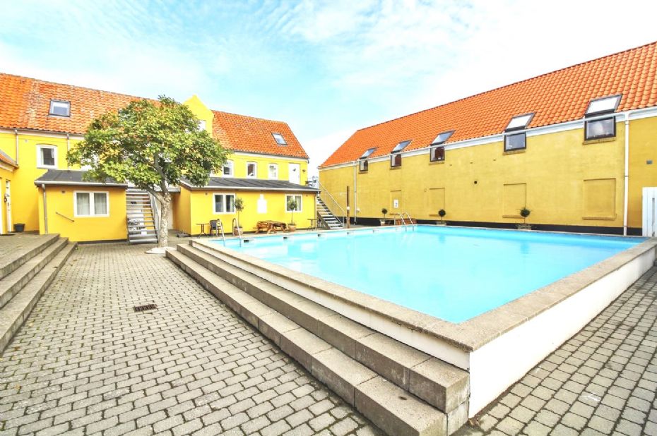 BOLIG - Ugens Hus hos Rønne Ejendomshandel er en ferielejlighed i Brøddegade i Gudhjem, hvor ejerforeningen råder over stor pool i aflukket gårdmiljø.