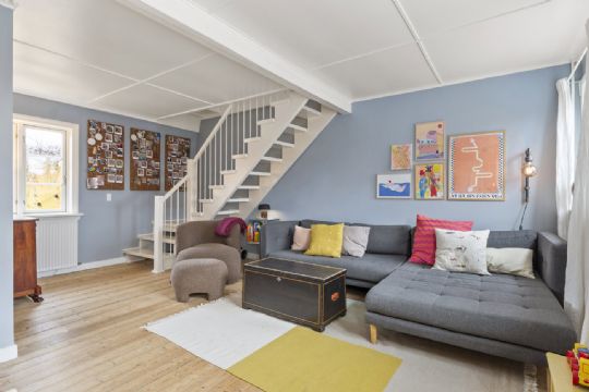 Foto: DanBolig BornholmBoligen fremstår flot istandsat og rummer en god planløsning med to stuer, et nyere køkken, bryggers og et lyst badeværelse i stueplan. De brede døråbninger og dobbeltdøre skaber en naturlig sammenhæng mellem rummene, hvor den hyggelige vinkelstue med brændeovn glider over i et lyst alrum og videre til det stilfulde køkken.