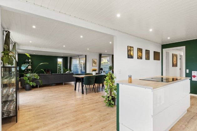 Stilrene opdateringerHuset har gennemgået betydelige forbedringer i 2023, herunder nyt gulv i stueplan og en renovering af køkken-alrummet med stilrene elementer. Med fem regulære værelser – og mulighed for et sjette – samt et kombineret opholdsrum med køkken og stue, sikrer villaen både funktionalitet og æstetik. Det åbne leverum skaber en lys og indbydende ramme for familiens hverdag, hvor der er plads til både fælles aktiviteter og individuelle gøremål.
