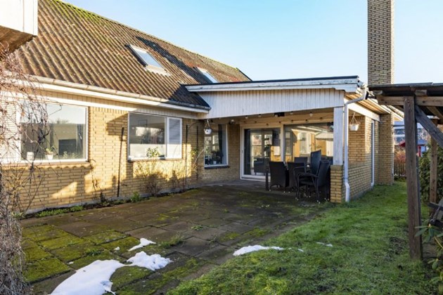 Udearealer til leg og afslapningVillaen ligger på en 740 m² stor grund med en dejlig have, flere terrassemiljøer og en vestvendt altan, der giver mulighed for at nyde solens stråler. Der er desuden god plads til leg på græsplænen, mens carporten og garagen gør det nemt at parkere og opbevare.