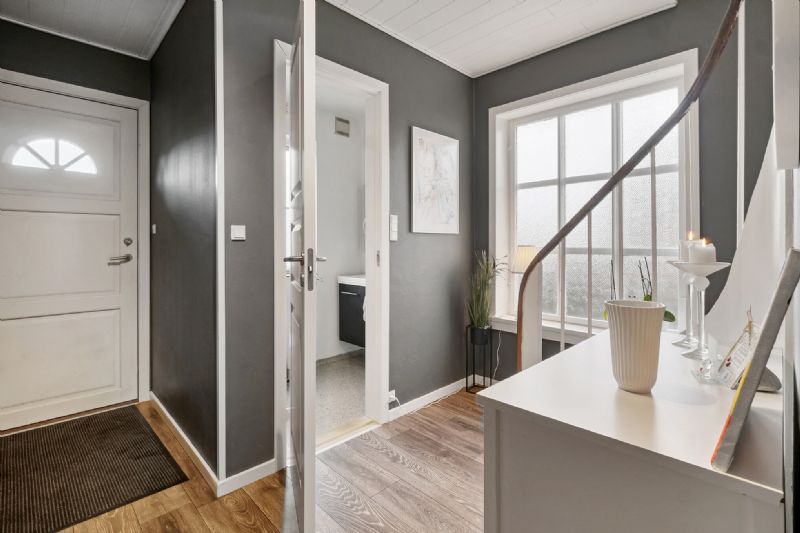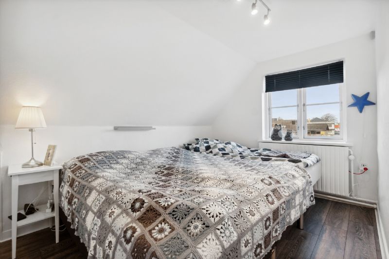 Køkkenet er fra 2020 og de fire værelser fordeler sig med ét i stueplan og to og et kammer på første sal. Tre af dem har faste skabe, og det ene har dobbelte døre til en fransk altan.