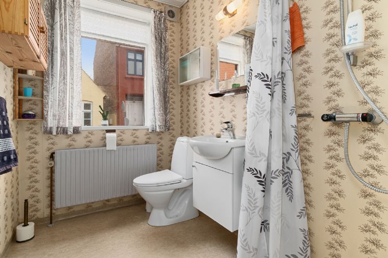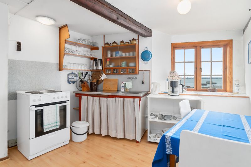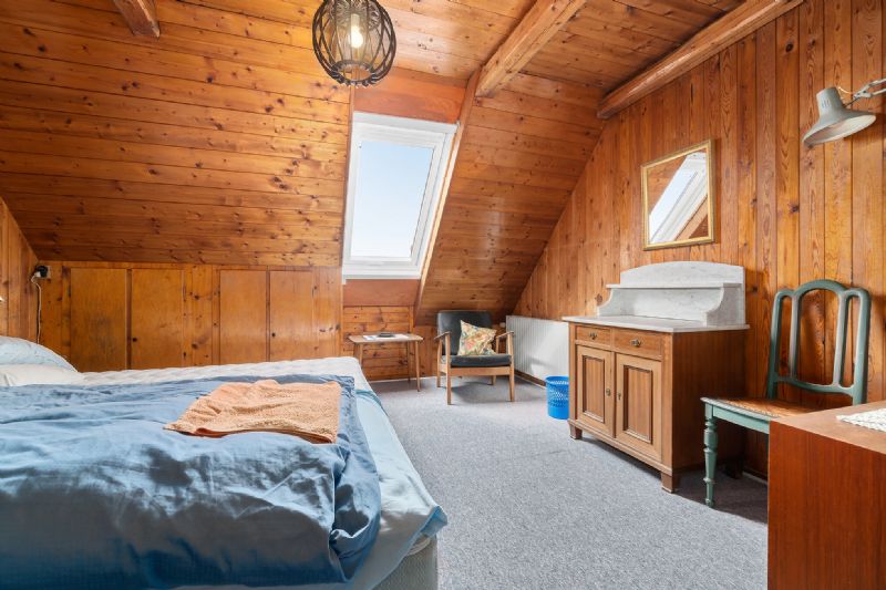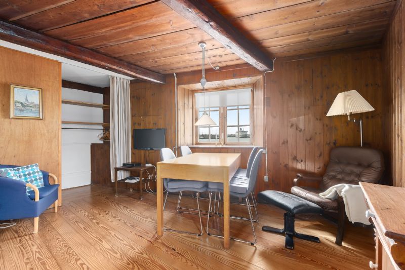 God planløsningFørstesalen rummer tre af de fire værelser, og ekstra charme tilføjes i form af de hyggelige skråvægge og synlige bjælker. Videre er der et badeværelse med badekar. Tilmed har førstesalen udsigt til vand.