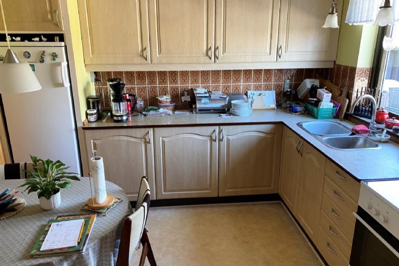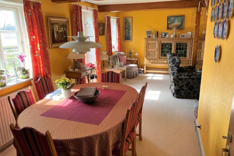 Boligareal på 149 kvmHusets boligareal er på 149 kvadratmeter, og indeholder entre med opgang til 1. sal, toilet med håndvask, spisekøkken, vinkelstue med udgang til haven og værelse med skabe samt bryggers med brusebad og ny luft til vand varmeanlæg.