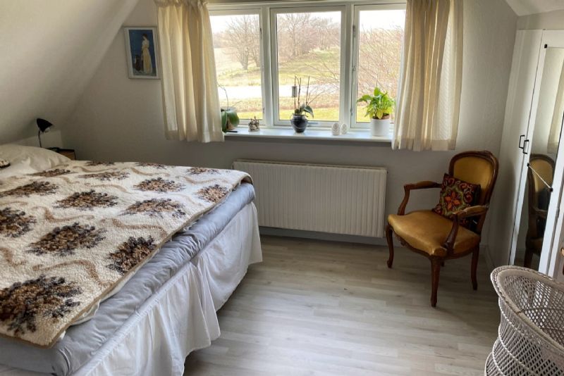 På 1. sal er forrum, stort gavlværelse, værelse med skabe og soveværelse med skabe.