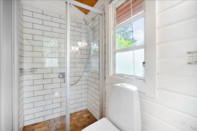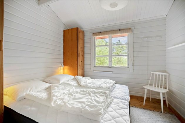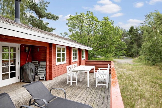 Indendørs fremstår huset lyst og indbydende med entre, tre gode værelser med senge, et pænt badeværelse med bruseniche og et funktionelt køkken med hvidevarer. Den hyggelige opholdsstue har brændeovn og direkte udgang til en stor, solrig træterrasse, som delvist er overdækket. Desuden rummer udhuset både skabsfryser, vaskemaskine og tørretumbler.