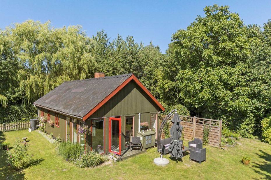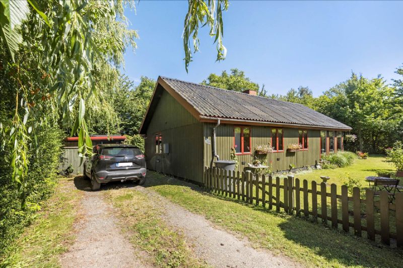 Dette sommerhus er et klassisk eksempel på et "rigtigt sommerhus", med grønmalede træfacader, rødmalede termoruder og et sort eternittag. Med et boligareal på 85 kvadratmeter tilbyder det en hyggelig og autentisk sommerhusoplevelse.