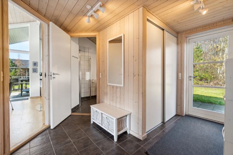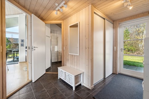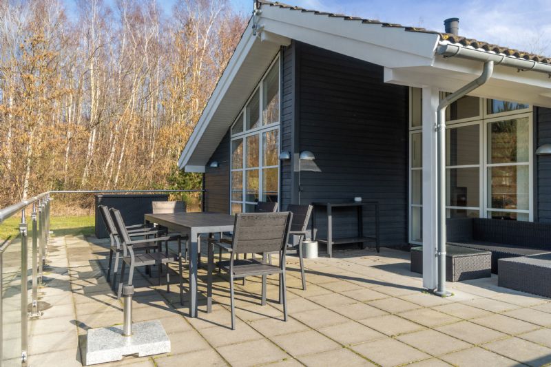 En af de mest tiltalende aspekter ved dette sommerhus er dets godt anlagte terrasser. Den ene terrasse er fritliggende og tilbyder en uhindret nydelse af den omkringliggende natur, mens den anden er beskyttet af et læhegn, hvilket skaber et ideelt udendørs rum til afslapning i alle vejrforhold.