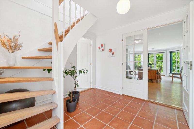 Førstesalen har loft til kip og byder på en repos og fire gode værelser.