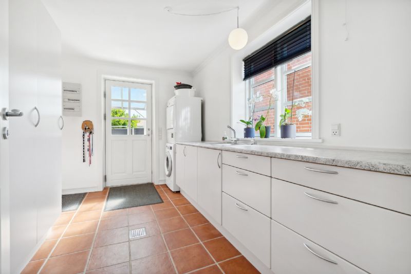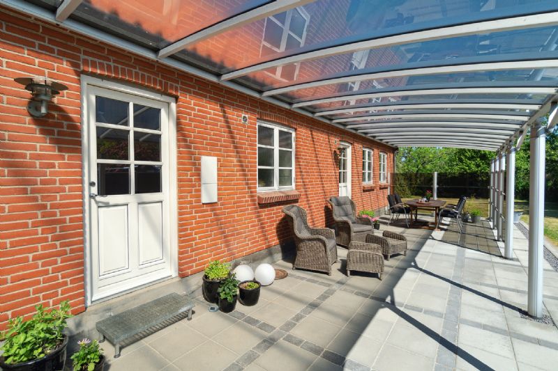 Udenfor venter en dejlig, nem have med tre terrasser, der indbyder til frokost under åben himmel, mens den lækre overdækkede terrasse i husets længde gør det muligt at nyde udelivet i læ for sol og regn.