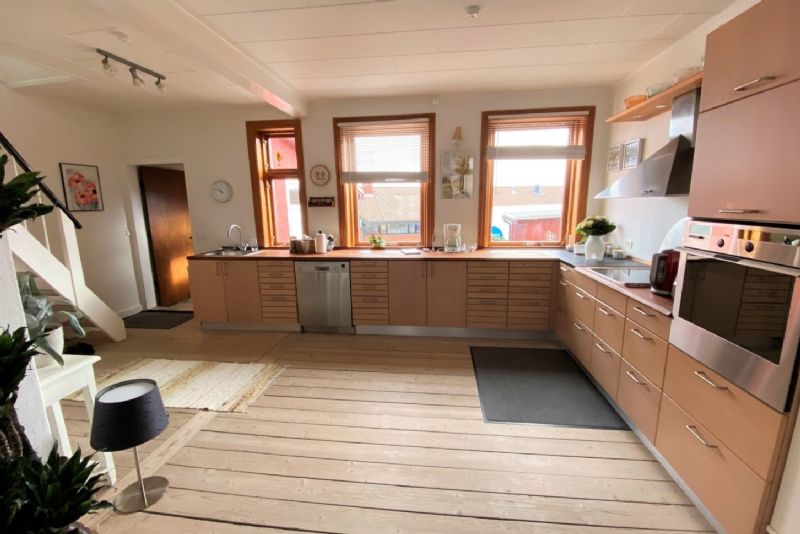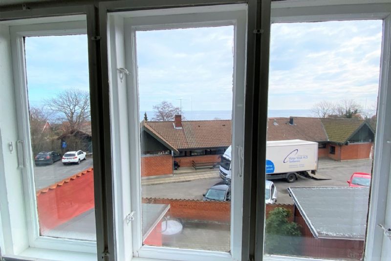 Der er tale om et utroligt velholdt byhus med rødt tegltag, kvist og med havudsigt mod Christiansø i horisonten.