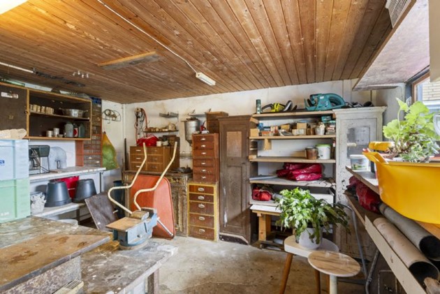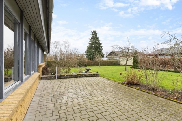 Haven er velholdt og byder på en stor græsplæne med plads til leg, en køkkenhave til grøntsagsdyrkning samt gode muligheder for at skabe hyggelige uderum. Den brede indkørsel giver nem adgang til garagen, hvor der er plads til både opbevaring og hobbyaktiviteter.