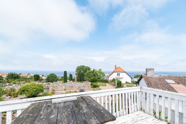 Ejendommen på Kirkevej fremstår som en vaskeægte perle med både historisk karakter og moderne potentiale. Huset er placeret højt i terrænet, godt tilbagetrukket fra gaden, og har en unik udsigt over byens tage, havnen og Østersøen. Den tilhørende altan danner rammen om afslappede stunder i solen med kaffe og samtaler, mens den private have tilbyder fredelige og grønne rammer midt i byens liv.
