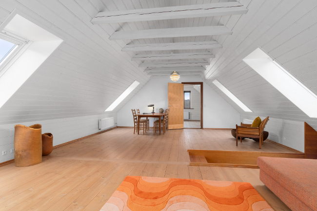 1. sal består primært af et kæmpe rum med centralvarme og effektiv brændeovn.