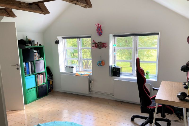 Dertil kommer et værelse, stue med udgang til terrasse og have og mellemgang med udgang til gården.