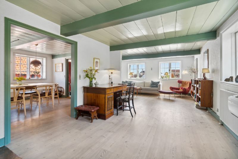 Den charmerende og unikke ejendom midt i Svaneke er et tidligere avlsbrug, og er en af de største i hele byen, og placeringen med kirken som kulisse og en fantastisk gårdhave.