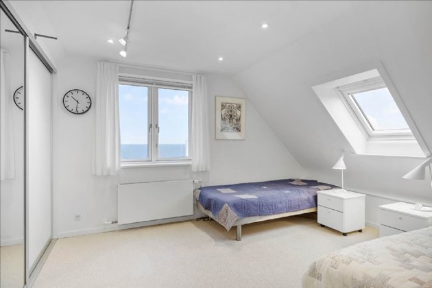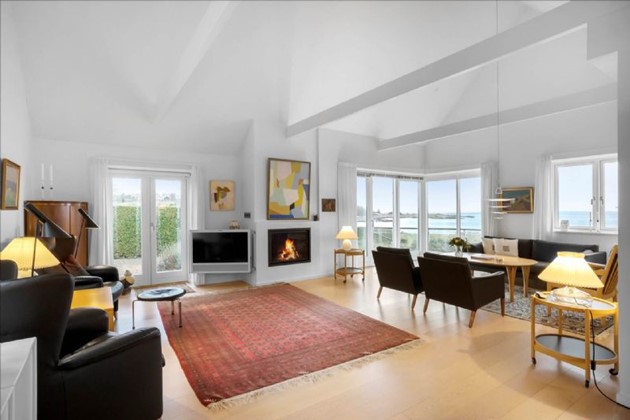 Det store spiseområde og den rummelige opholdsstue, med loft i kip og en elegant gaspejs, tilbyder en betagende udsigt over klippekysten og Østersøen.