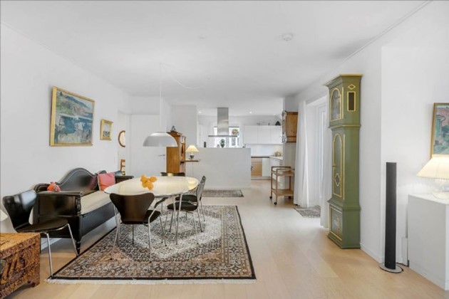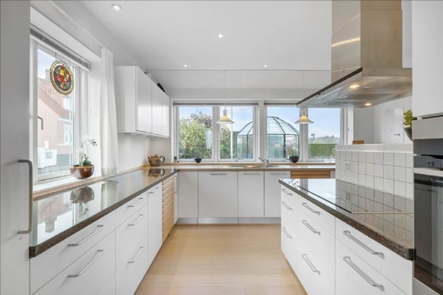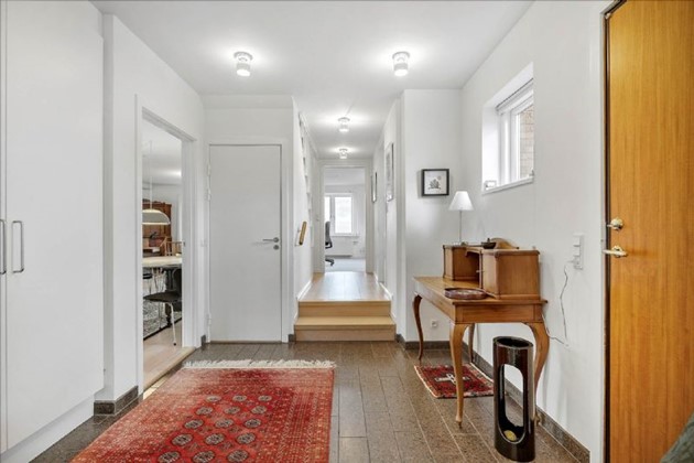 Ejendommen, som blev omfattende moderniseret i 2007/2008, tilbyder en gennemtænkt planløsning med flere luksuriøse faciliteter. Blandt disse er en rummelig entre med Moseløkke-granitgulv og gulvvarme, et praktisk bryggers, og et moderne køkken med state-of-the-art hvidevarer og direkte adgang til en solrig, ugeneret terrasse med glaspavillon.