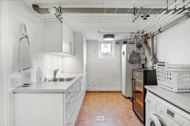 Kælderen i ejendommen er højloftet og funktionel, herunder et stort rum/bryggers med diverse faciliteter og et rum med direkte udgang til gårdspladsen.