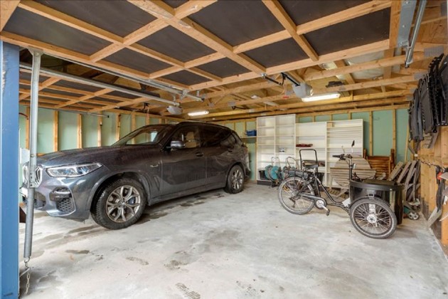 Opført i klassisk mursten med et rødt tegltag og hvidmalede termovinduer, fremstår ejendommen både stilfuld og praktisk med minimal vedligeholdelse. Den rummelige dobbelte garage er bygget i træ med icopaltag og udstyret med to elektriske hejseporte.