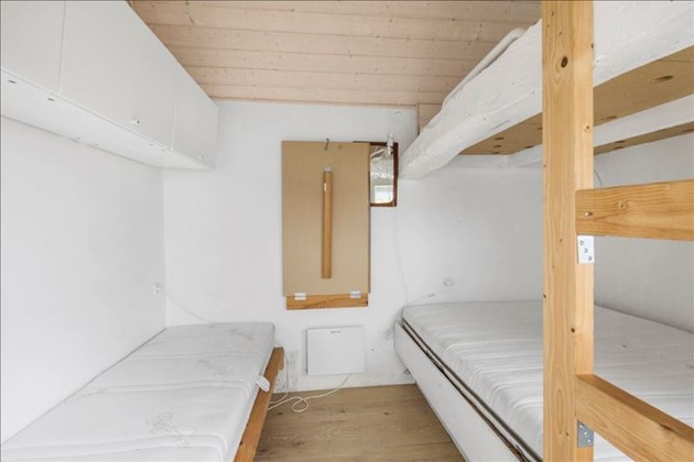 På første sal tilbyder huset et repos med en charmerende kvist, et gavlsoveværelse med dobbeltseng og to yderligere værelser, hver med to senge. Ejendommen kompletteres af et udhus, en dobbelt carport, et sommeranneks med sovepladser og en terrasse, der også nyder godt af havudsigten, samt et drivhus for haveentusiaster.
