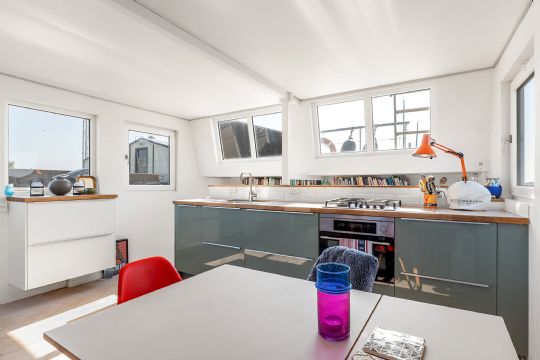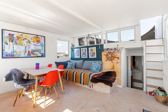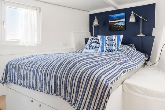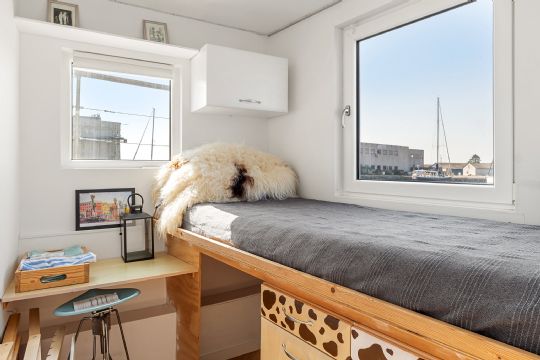 Tre værelser og god pladsBoligen rummer tre værelser i varierende størrelser, hvilket giver fleksible sovepladser til både familie og gæster. Værelserne har lysindfald fra syd, øst og vest, og fra ét af værelserne er der direkte udgang til en af husbådens terrasser.