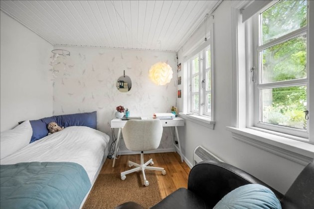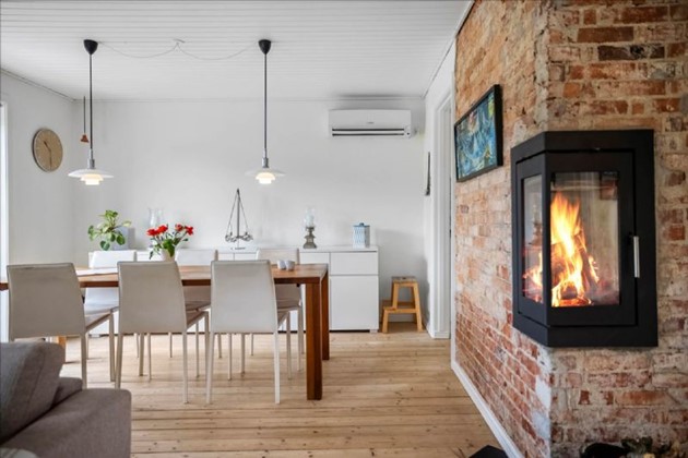 Villaen fremstår i velholdt stand med flere opdateringer, herunder et nyere badeværelse fra 2021/2022, varmepumpe, moderniseret køkken og hyggelige detaljer som brændeovn og rå murstensvæg i stuen. Der er værelse i stueplan og to værelser på førstesalen – oplagt til børnefamilien eller par, der ønsker ekstra plads.
