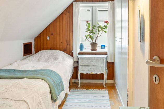 På førstesalen findes et repos med lysindfald samt to værelser. Herfra er der udsigt over området og et glimt af havet. Etagen kan anvendes fleksibelt som soveværelser, kontor eller børneværelse.
