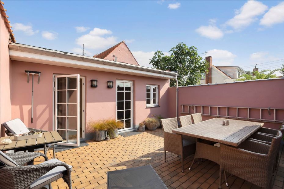 En af ejendommens helt store kvaliteter er den ugenert gårdhave, som fungerer som et privat frirum midt i byen, hvor sommerdage kan nydes i fredelige omgivelser.