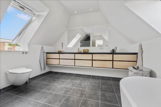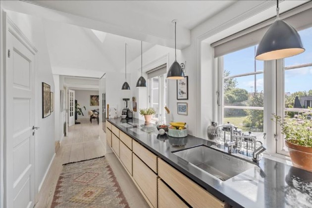 En kompromisløs renoveringEjendommen blev totalrenoveret i 2012 med fokus på at bevare den originale charme, samtidig med at der blev tilføjet moderne løsninger. Kvalitetsmaterialer, godt lysindfald og gennemtænkte detaljer præger boligen, der blandt andet er udstyret med gulvvarme i hele stueplan og et Genvex-anlæg, hvilket sikrer et sundt indeklima. Energimærket A2010 understreger den høje standard.