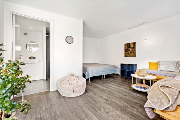 Plads til hele familien – og mere tilBoligen har en rummelig stue, der kan opdeles efter behov, en stor spisestue med direkte udgang til haven og et stilfuldt køkken med eksklusive hvidevarer. Førstesalen byder på tre værelser, et repos med skabsplads og et elegant badeværelse. Kælderen rummer et funktionelt vaskerum og depotplads.
