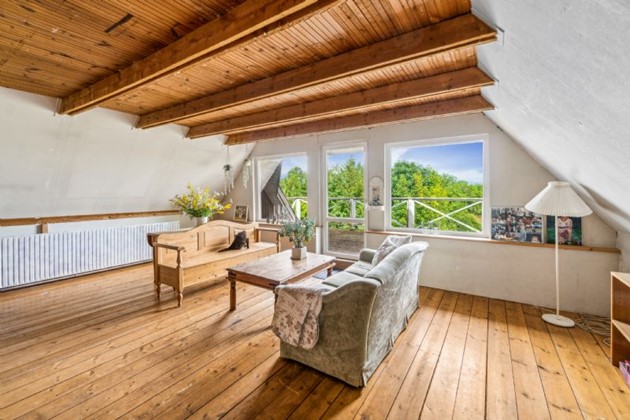 Stueetagen rummer desuden et værelse, et badeværelse og et gæstetoilet.