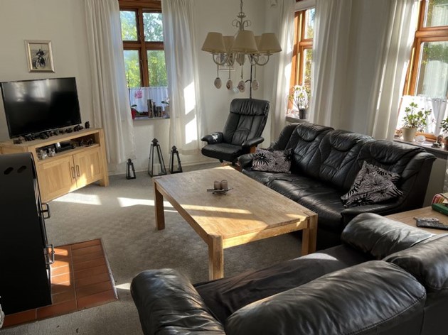 BOLIG - Ugens Hus hos Rønne Ejendomshandel er en rummelig facadestensmuret villa med stor have og garage på Spurvevej i Østermarie.