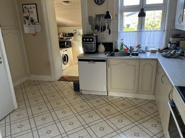 Villaen åbner op til en indbydende entre, der leder op til første salen. I stueetagen findes et funktionelt køkken med nedgang til en rummelig kælder. Et tilstødende bryggers fungerer også som hverdagsentre, og fra dette rum er der adgang til et moderne badeværelse med brusefaciliteter samt et soveværelse. Stuens hjerte er en femfags stue, der er udstyret med en hyggelig brændeovn og tilbyder masser af plads til familieaktiviteter.